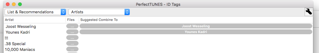 6) When using ID Tags editor->List & Recommendations->Composes I noticed a large number of composers with / between files with multiple composers being suggested to replace / with ;. I like the recommendation and normally do that but what I find odd is PerfectTUNES on Windows either V2.1 or V3 beta doesn't find these or recommend them like the macOS version.