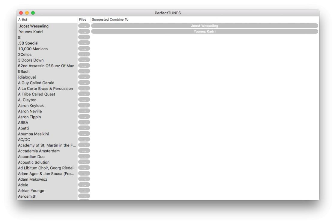 the MacOS version of PerfectTUNES displays a large number of composers, artists, etc that it suggests combining the delimiter / for entries with multiple versions into a version with ; delimiter (at least visually in UI).